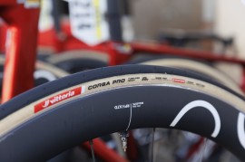 Si l'on retrouve les moyeux Oquo Q10, en revanche, les rayons SAPIM CX Ray laissent ici place à des rayons carbone. Et la jante voit aussi sa largeur augmenter à 25 mm en interne, ce qui en fait une des jantes les plus larges sur la route.